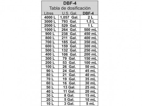 El DBF-4 puede ser diluido en el diesel o aceite de calefacción en una proporción de 1 a 2000.